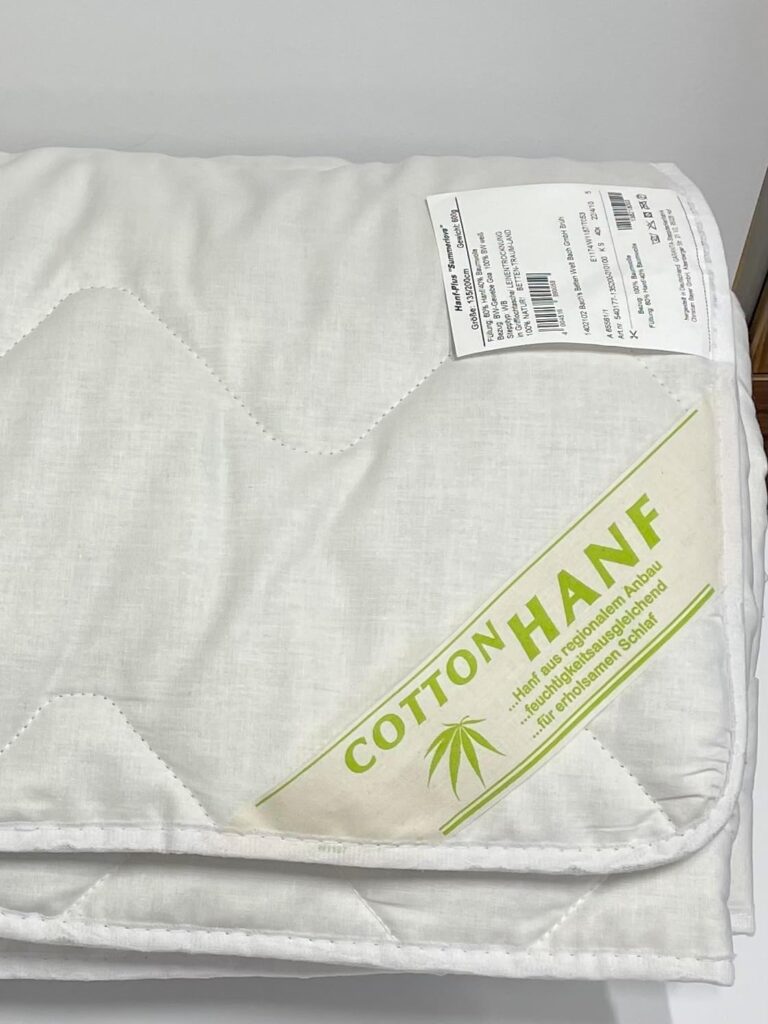 Hanf ist eine wahre Power-Pflanze: Sie wächst extrem schnell, ist sehr robust und benötigt beim Anbau weder Pestizide noch viel Wasser. Als Füllung für eine Bettdecke ist Hanf ein exzellenter Feuchtigkeitsmanager. Diese leichte Sommerdecke von „Bach’s Betten Welt“ kombiniert Hanf mit Baumwolle und ist dadurch ideal für warme Nächte oder für Menschen, die schnell schwitzen. Die Faser nimmt Feuchtigkeit auf, ohne sich nass anzufühlen, und gibt sie schnell wieder ab. Als in Deutschland hergestellte, nachhaltige Bettdecken sind sie zudem waschbar und sehr pflegeleicht.