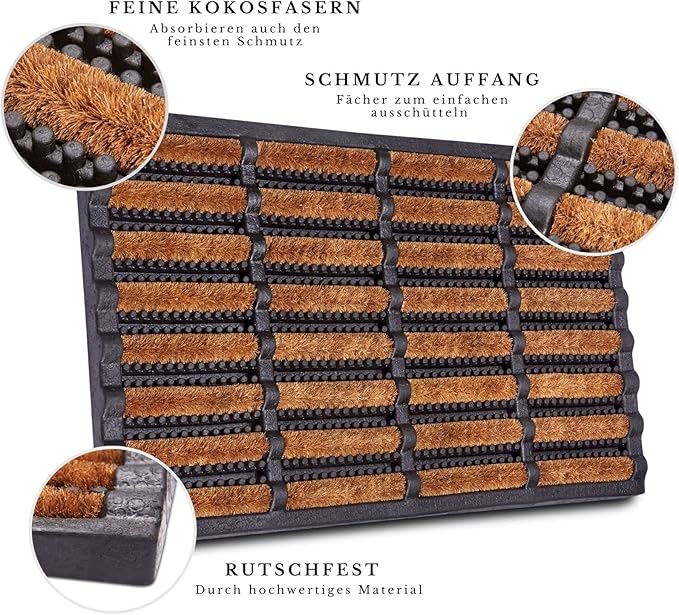- Kombination aus Kokos und Gummi (hohe Reinigungsleistung und Rutschfestigkeit)