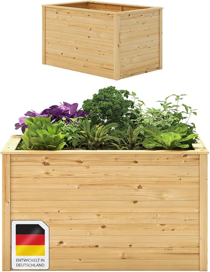 Mit einer imposanten Breite von 123 cm bietet dieses nachhaltige Hochbeete Modell eine ungewöhnlich groĂe AnbauflĂ€che fĂŒr ein Stelzenbeet. Dies ermöglicht die Kultivierung komplexerer Mischkulturen direkt auf dem Balkon oder der Terrasse. Das mitgelieferte Spezial-Pflanzvlies sorgt fĂŒr ein optimales Feuchtigkeitsmanagement und schĂŒtzt die Holzstruktur von innen heraus. Wer eine groĂzĂŒgige, zertifizierte und zugleich preiswerte Lösung sucht, findet hier ein System, das Nachhaltigkeit und funktionales Design meisterhaft kombiniert.
