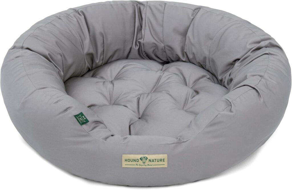 Dieses kuschelige Donut-Bett von HOUND & NATURE geht einen besonders cleveren Weg in Sachen Nachhaltigkeit. Die Füllung besteht aus Stoffresten (Leftovers) aus der Textilproduktion, die sonst im Müll landen würden – ein perfektes Beispiel für Upcycling. Der Bezug ist aus robuster Baumwolle und das gesamte Bett ist extrem hygienisch, da es bei bis zu 90°C in der Maschine gewaschen werden kann. Damit ist es die beste Wahl für Allergiker, Welpen oder inkontinente Hunde.