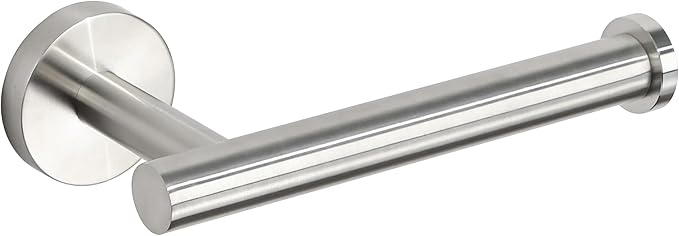 Dieser Toilettenpapierhalter ist die minimalistische und langlebige Lösung für jedes moderne Badezimmer. Er ist exquisit aus 304 Edelstahl gefertigt, was ihn wasserdicht und rostfrei macht und seine Langlebigkeit in nasser Umgebung garantiert. Die Basis mit zwei Befestigungspunkten und die verdeckten Schrauben sorgen für ein sauberes, stabiles Erscheinungsbild. Ein kleiner Vorsprung am Ende der Stange verhindert das Herunterfallen der Rolle. Diese Nachhaltige Toilettenpapierhalter kann horizontal oder vertikal montiert werden und ist dank des gebürsteten Finishs ein zeitloses Design-Accessoire.
