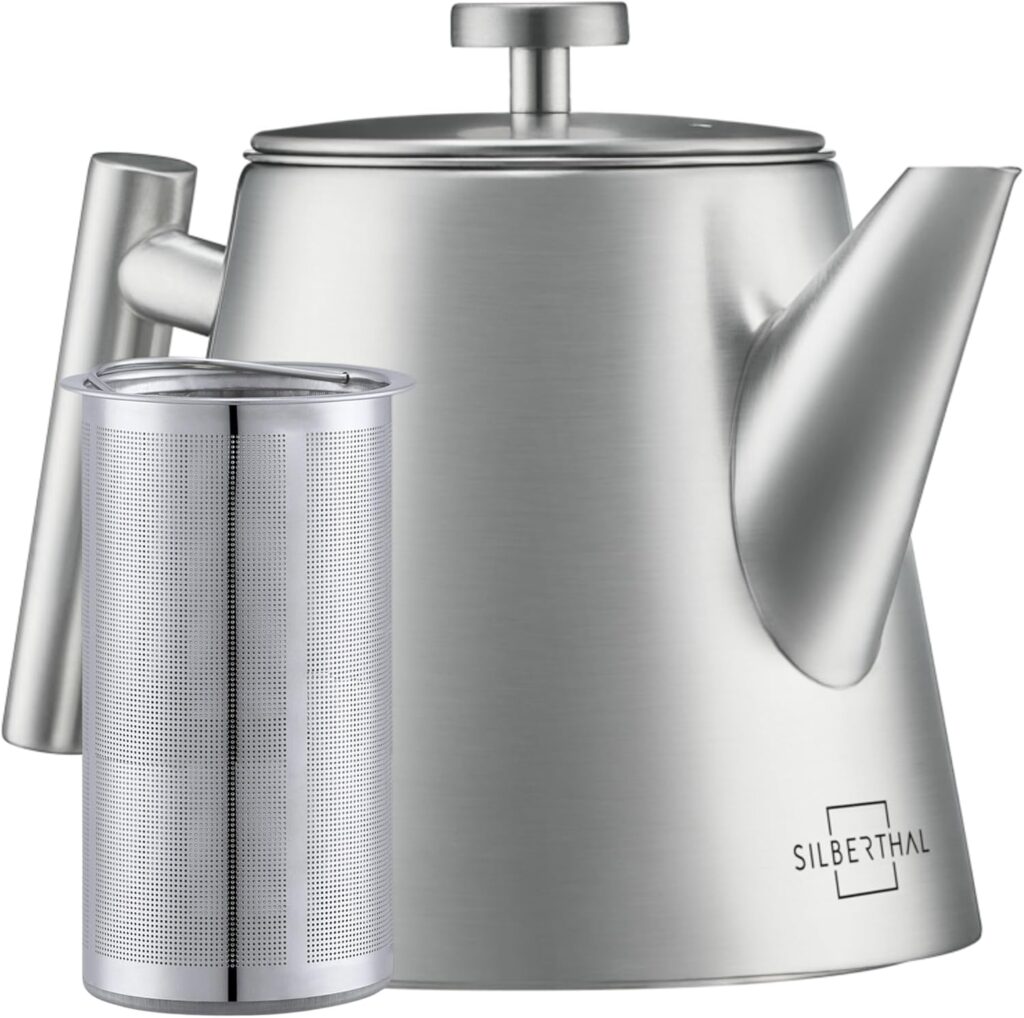 SILBERTHAL Thermo Teekanne – 1 L Edelstahl, doppelwandig und tropffrei
